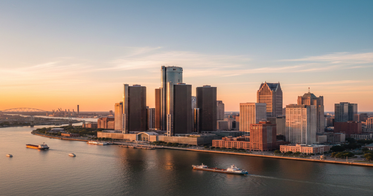 デトロイトは、アメリカ合衆国ミシガン州南東部に位置する、人口約63万人の大都市です。カナダとの国境に接し、デトロイト川を挟んでカナダのウィンザー市と向かい合う国際的な立地にあります。