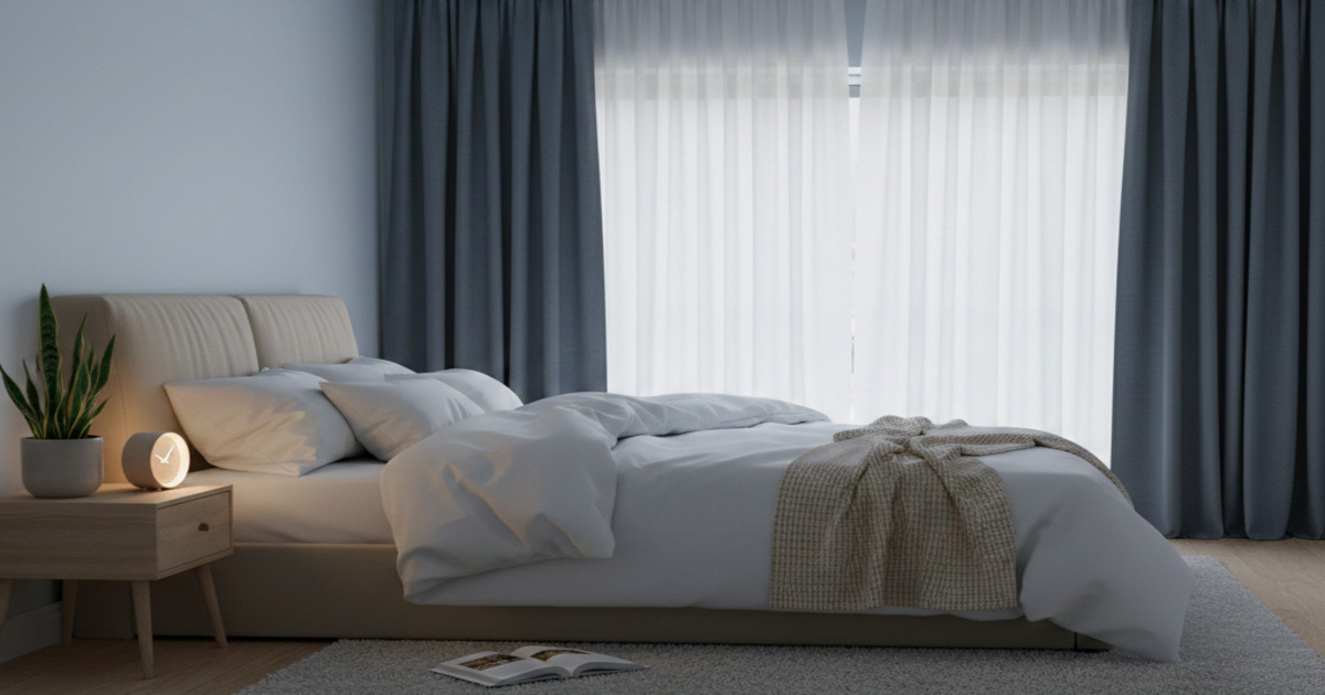 • 照明の調整:遮光カーテンで外部の光を遮断し、室内の照明も完全に消します。豆電球も睡眠の質を下げるため、真っ暗な環境が理想的です